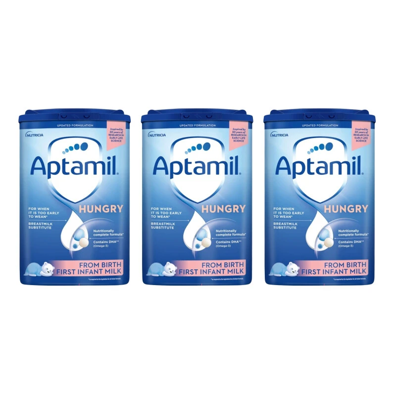 Aptamil hungry first infant milk is a breastmilk substitute and is suitable for babies from birth. Aptamil’s team of more than 500 scientists and experts have developed Aptamil Hungry First Infant Milk, inspired by 50 years of research in early life science. The formulation is nutritionally complete* and suitable from birth as a breastmilk substitute.