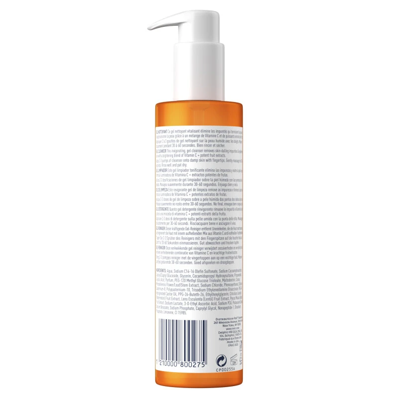 RoC Multi Correxion Revive & Glow Gel Cleanser is 1 cleanser that provides 3 age defying results! From the first use, this gel formula delivers an instant glow, dissolves dirt and oils, and leaves skin smooth and refreshed. After 2 weeks skin’s radiance is brightened and improved, it reduces discolouration, and rough skin texture is improved. With an invigorating citrus scent, this cleanser contains brightening ingredients including RoC Vitamin C, Potent Fruit Extracts, and Glycolic Acid. Skin-dulling impurities trapped within the skin are extracted from the skin, then Vitamin C replenishes skin to brighten and boost its radiance.